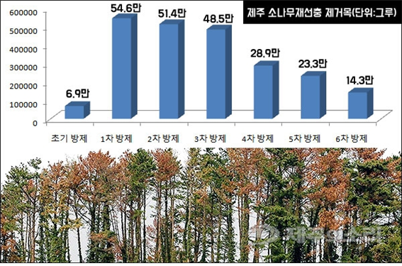 2013년 제주에서 대대적인 소나무 재선충병 방제 작업이 이뤄진 후 사상 처음으로 연간 고사목 제거량이 10만 그루 수준으로 떨어졌다.